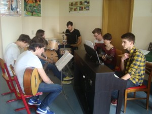 Musikpädagoge unterstützt Abi-Band-Probe